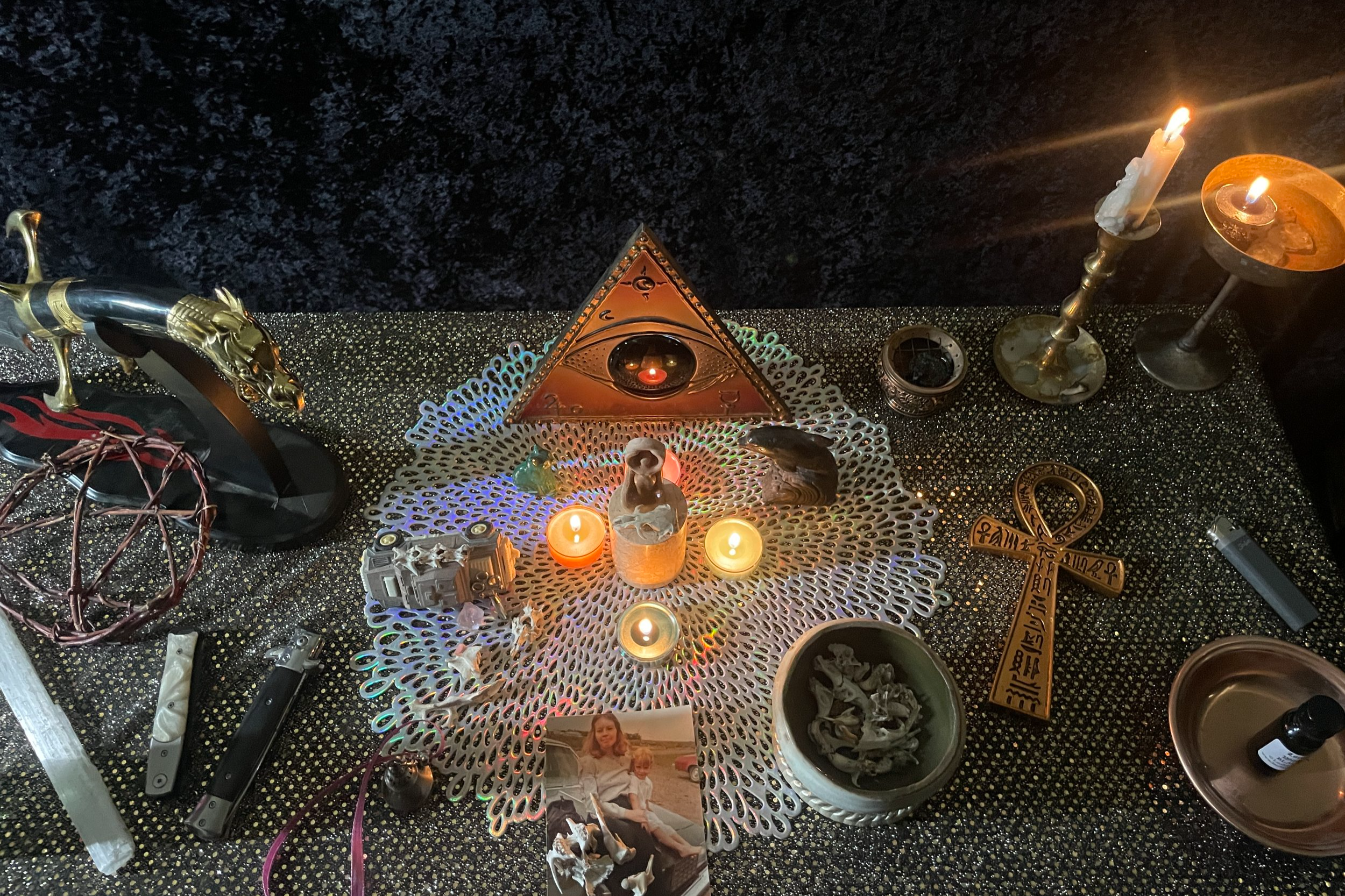 While scrying is spiritual, it aligns with psychological principles. Gazing into a reflective surface (even your big black tv screen can be used which is why I have on in my ritual room) induces a meditative state, activating the brain’s default mode network, which fosters introspection and creativity (Scientific American). The morphing faces seen during scrying may result from the brain’s pattern-seeking nature, amplified by intention and spiritual energy.